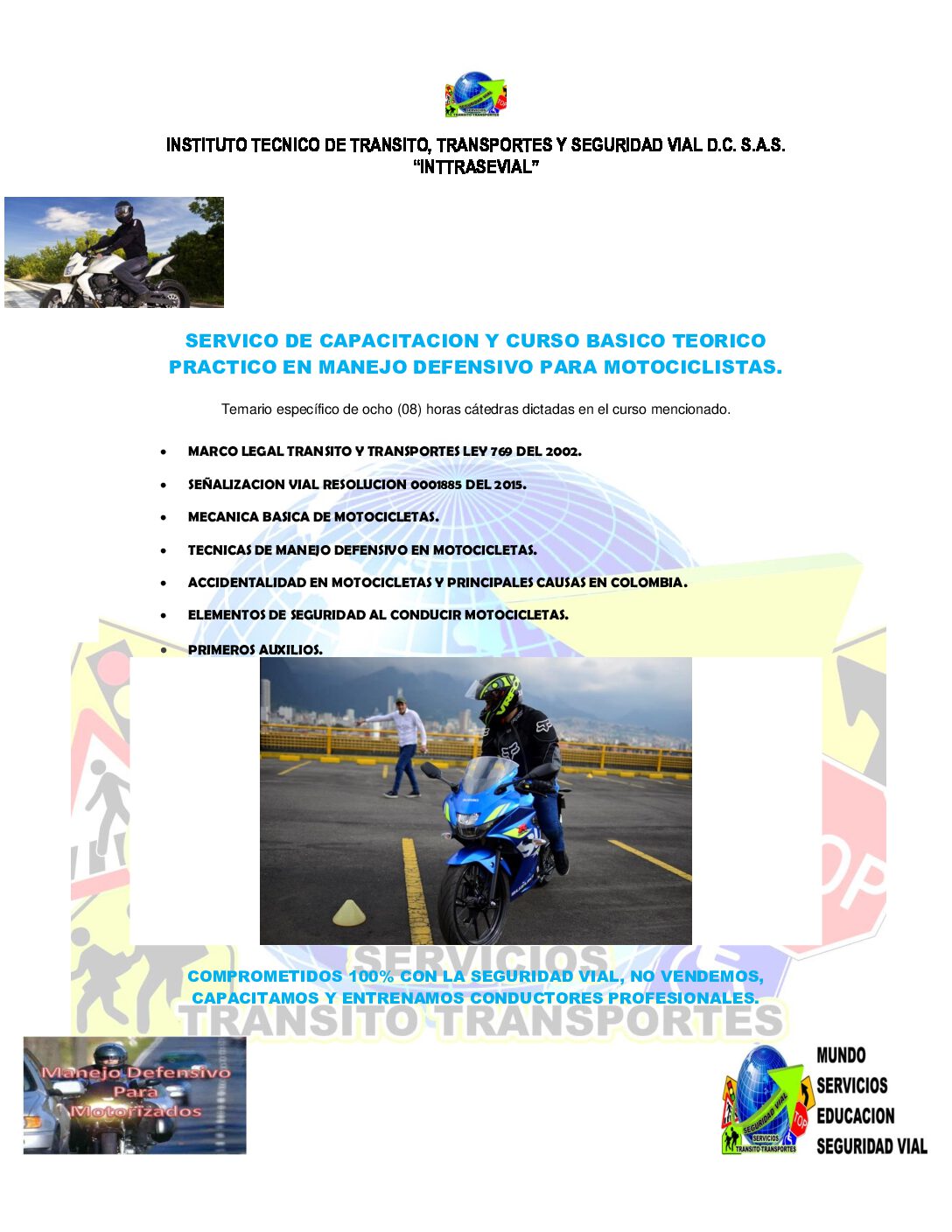 El egresado estará en capacidad de desempeñarse como conductor defensivo, con conocimientos claros en normas de tránsito y transportes así como manejo de extintores, mecánica básica, señalización vial etc.